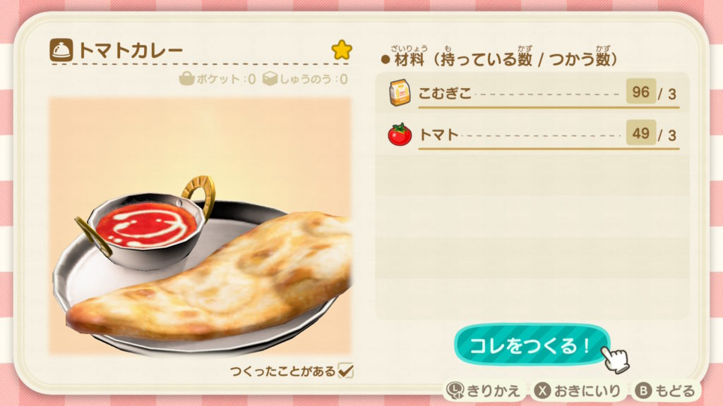 カレーはこむぎこと野菜の組み合わせで作れるので、最大効率の粉系の材料の倍率も含められ、畑の野菜を満遍なく使える素晴らしい料理です。